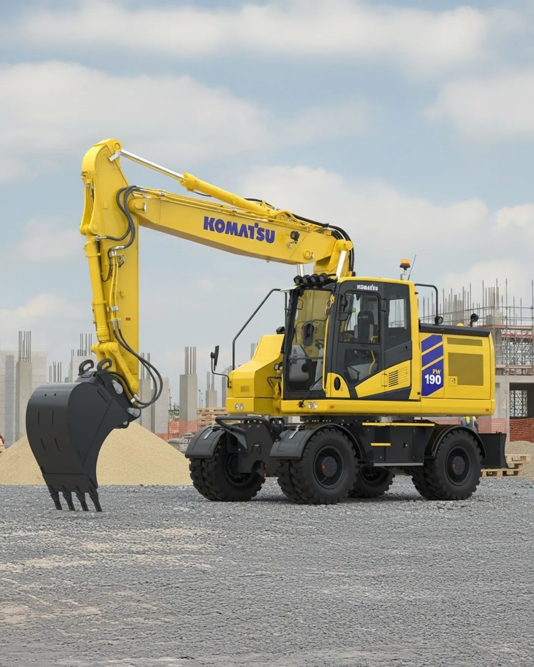 Komatsu PW190-11 är en kraftfull och mångsidig hjulgrävare utrustad med fyrhjuls- och krabbstyrning för maximal flexibilitet på arbetsplatsen. Med hög prestanda, stabilitet och ett grävdjup på upp till 6,07 meter är den ett pålitligt val för krävande entreprenadarbeten.