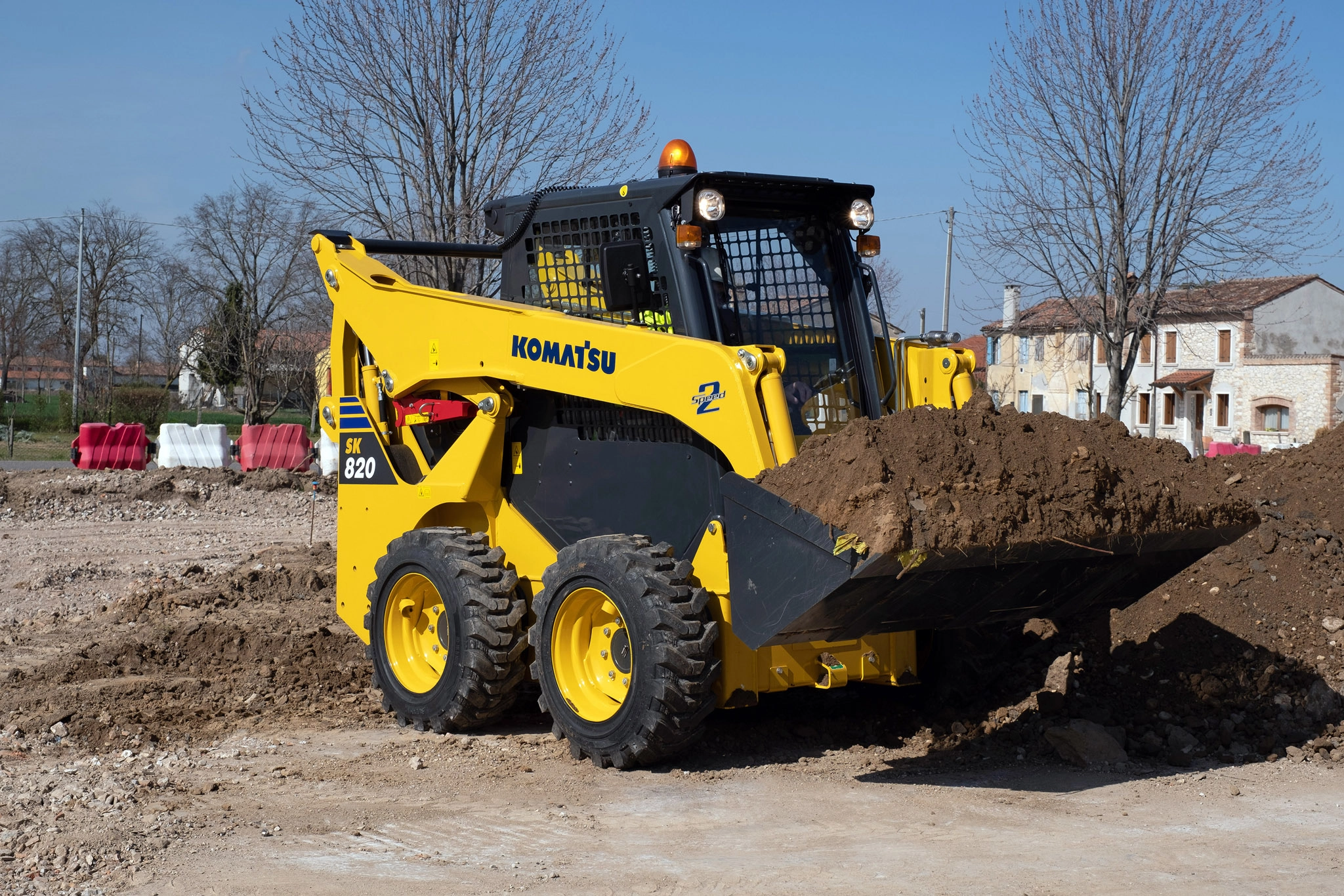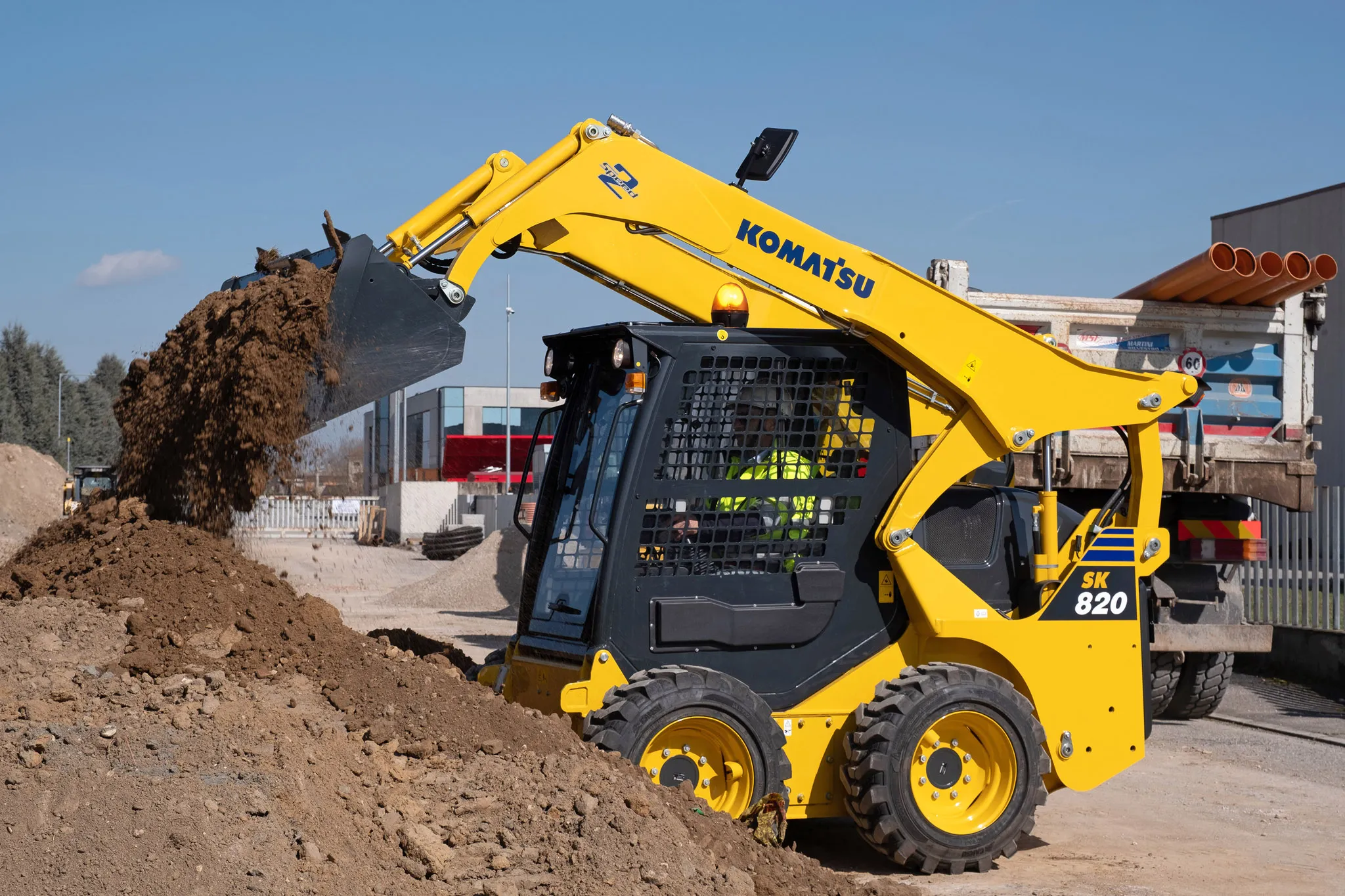 Komatsu SK820-8 är byggd för tyngre jobb och mer produktivitet. Den drivs av en EU Steg V-motor på 37,9 kW (50,8 hk) och har en driftvikt på 3 140 kg samt en lastkapacitet på 950 kg.