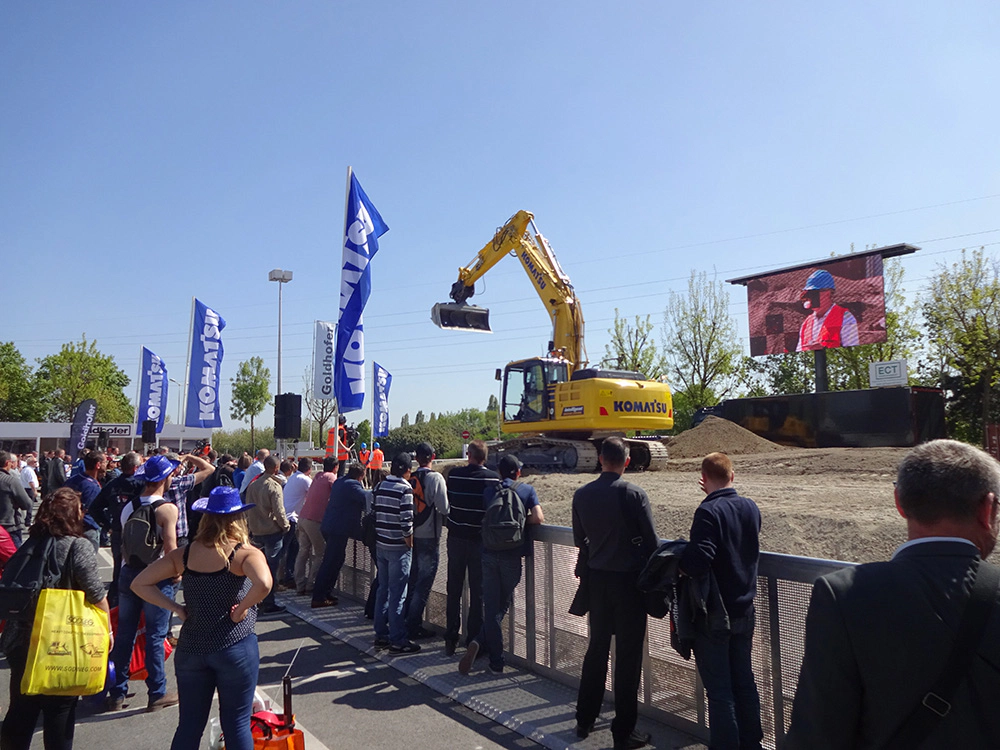 Komatsus intelligenta maskinstyrningsteknologi spelar en central roll under mässan. Grävmaskinen PC210LCi-11, med sin automatiskt tiltbara skopa, och bandschaktaren