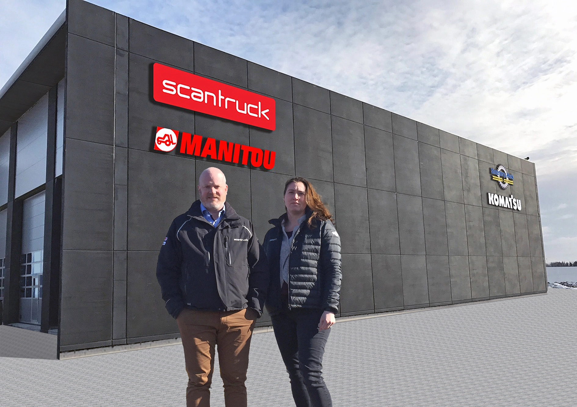 För mindre än ett och ett halvt år sedan, offentliggjorde Manitou- och Mustang-importören Scantruck sina planer på att bygga ett svenskt huvudkontor i Rosersberg. Den nya byggnaden är dubbelt så stor som Scantrucks behov, så man slöt ett avtal med Komatsu-importören Söderberg & Haak, som hyr den andra halvan av byggnaden. I och med detta kan de två bolagen bjuda på lite av ett maskin-Eldorado i Rosersberg.